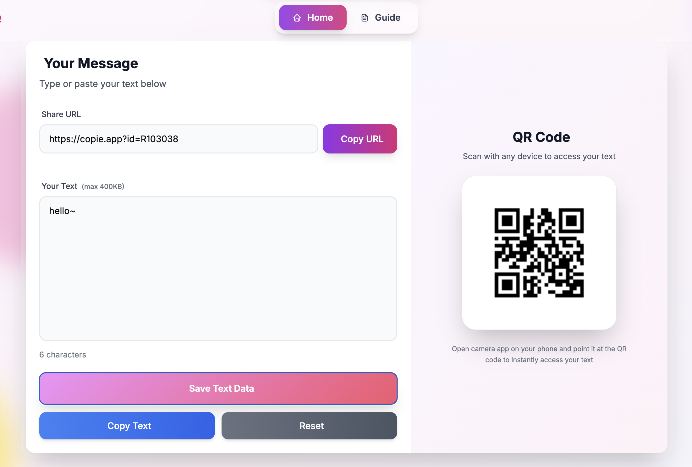 텍스트 붙여넣기 → 바로 QR 코드 생성